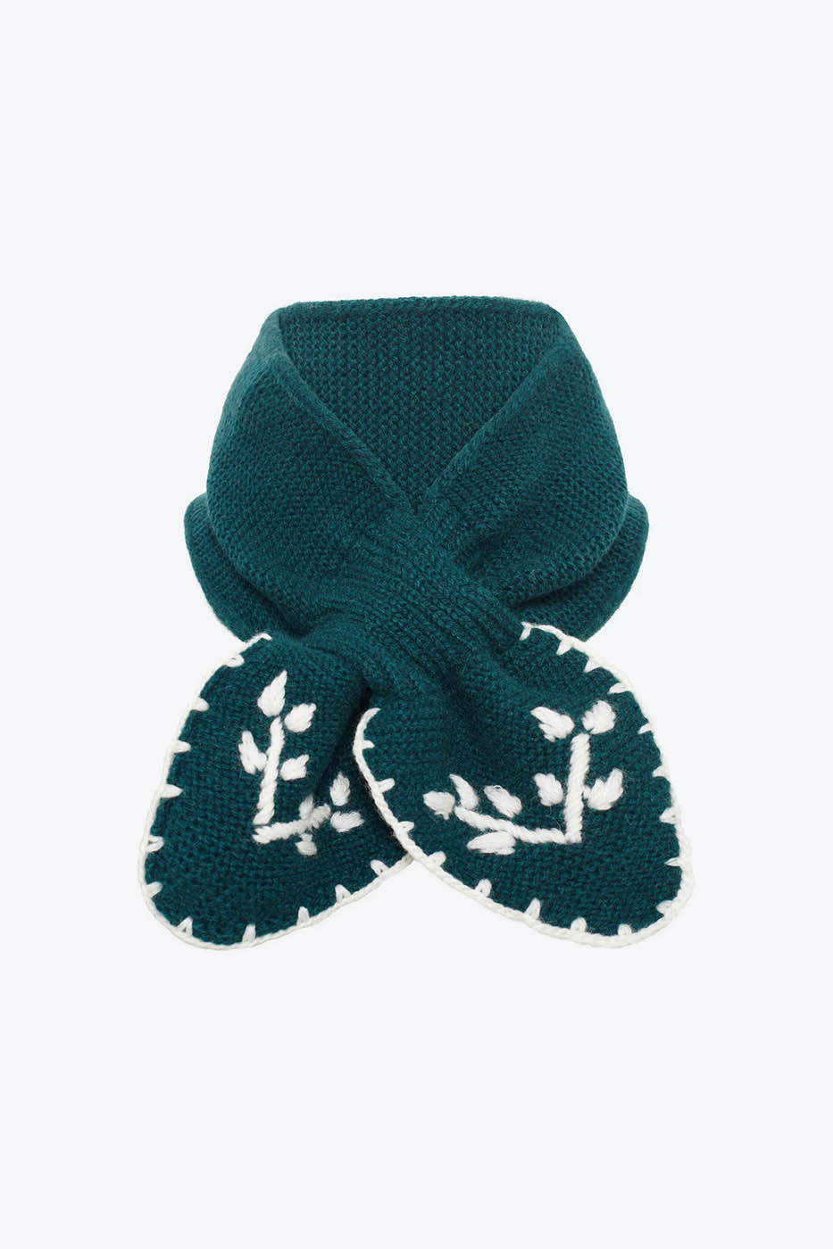 Doux et moelleux, ce tour de cou molli est tricoté en Italie dans un mélange de laine extra-douce et de cachemire. Il se caractérise par sa fermeture croisée d'une grande élégance, et par ses broderies main contrastantes qui lui offrent une note féminine et délicate. Son petit format en fait un accessoire pratique à emporter partout, pour un cocon de chaleur à tout moment.