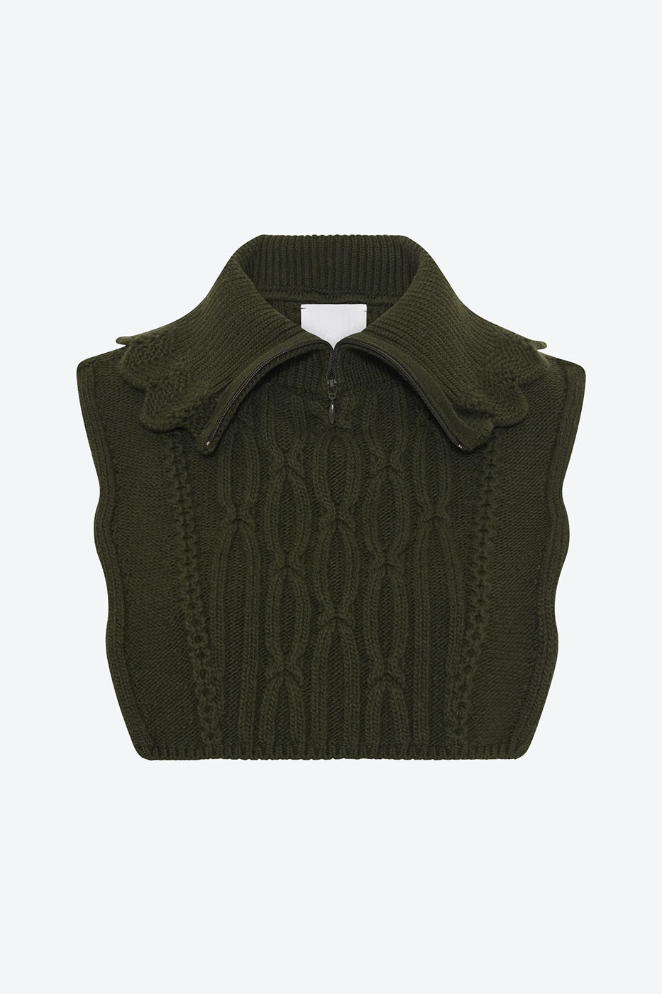 Alliant féminité et confort, ce plastron en maille est tricoté en Italie dans une pure laine extra-douce.