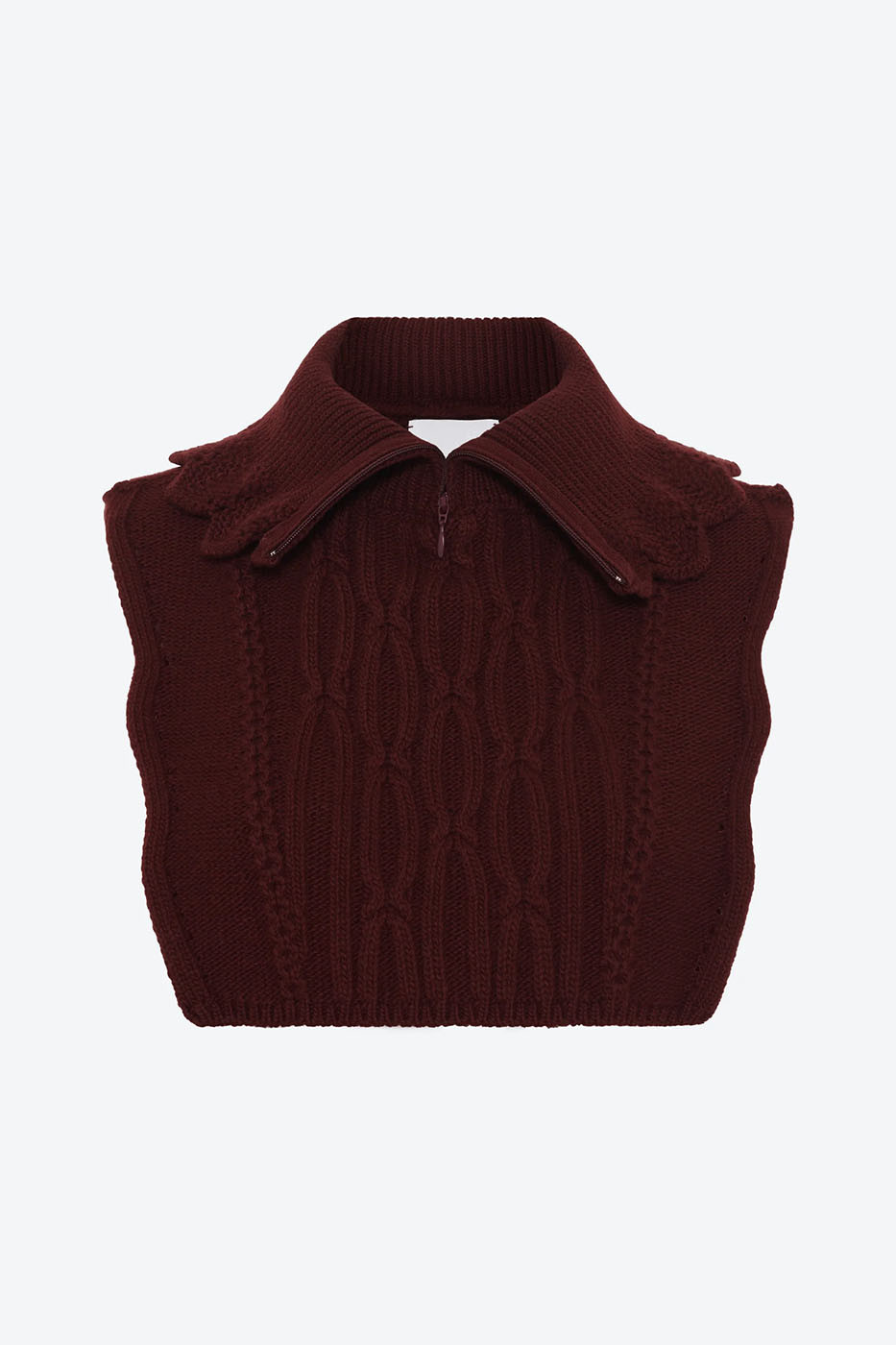 Confectionné en Italie dans une pure laine extra-douce, ce plastron en maille allie féminité et confort.
