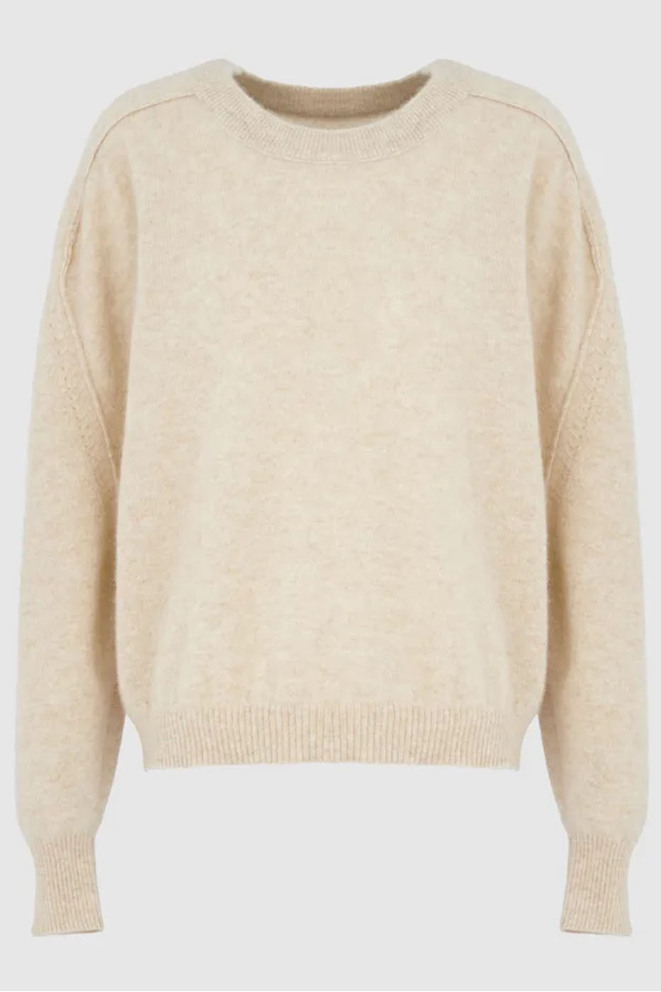 Pull en cachemire col rond, manches longues. Coupe ample. Côtelé au niveau du col, des poignets et à la base.