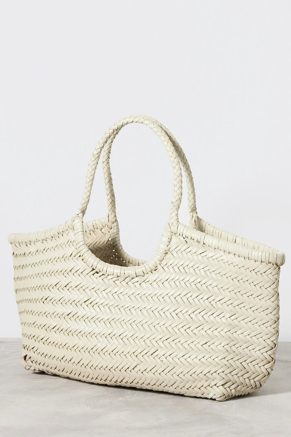 Nommé d'après l'île ensoleillée du Massachusetts, le sac Nantucket est l'un de nos styles les plus populaires. Tissé à la main dans un tricot serré en cuir de veau de buffle doux et avec des poignées tressées, ce fourre-tout spacieux, non doublé et ouvert sera l'accompagnement parfait pour des pique-niques décontractés sous le soleil d'été.