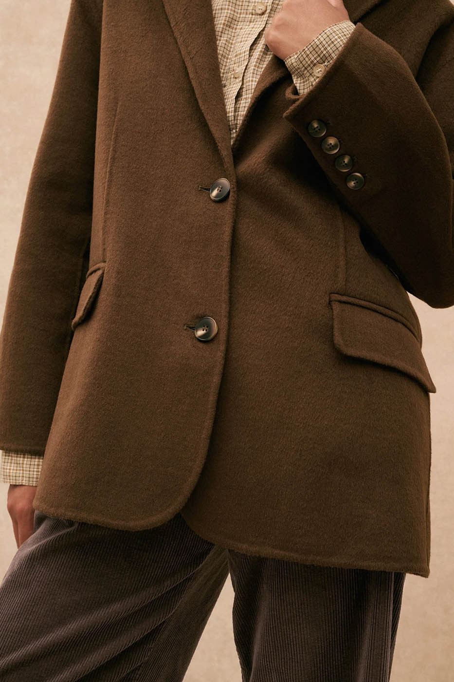 Veste de costume doublée, coupe épaules tombantes, coupe droite.